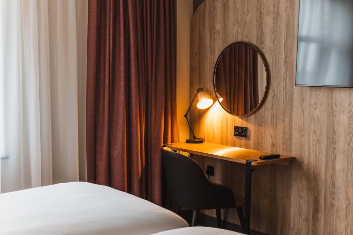 Alongside the front-of house transformation, Style & Finch also carried out the refurbishment of 120 bedrooms as part of the wider fit-out, supplying and installing all loose and fitted furniture, including bespoke case goods, seating, tables, and bathroom vanity units.